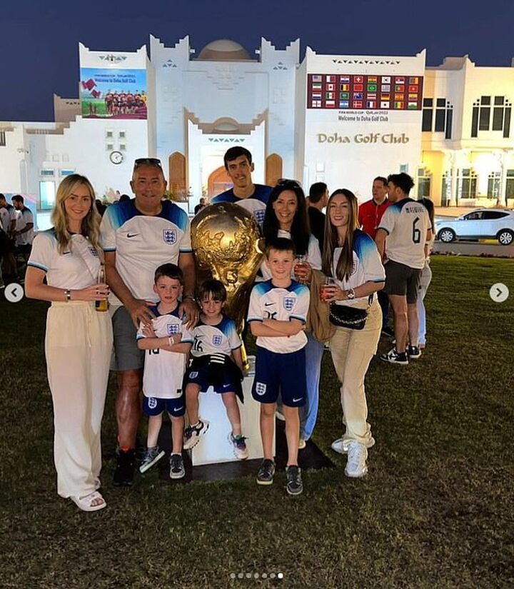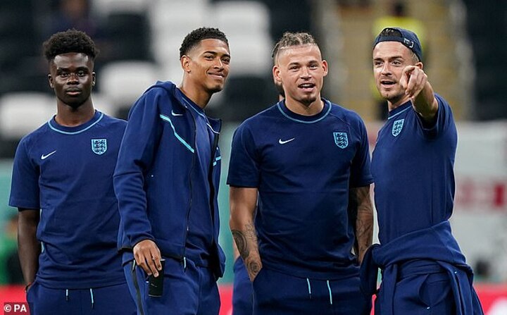 They posed for a photo together outside the Al Bayt Stadium holding an England flag containing badges of their teams including Manchester United and Leeds United.