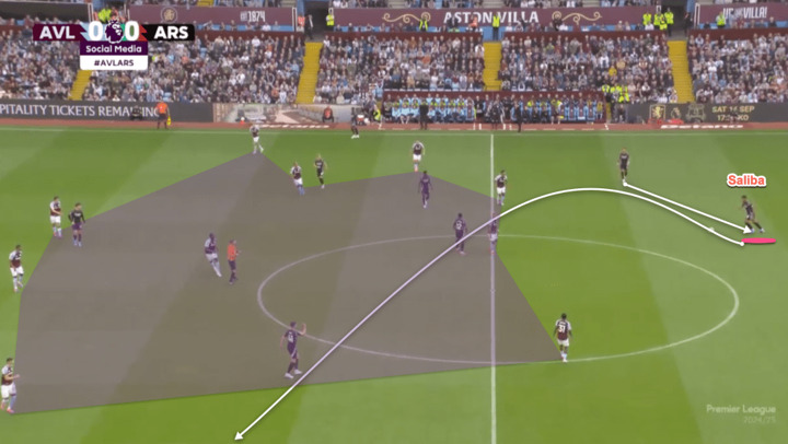 Saliba is positioned well and he wins the aerial duel with ease.