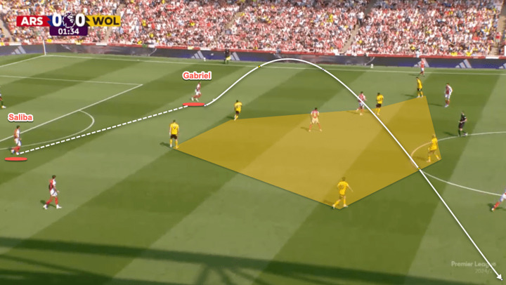 The ability of Saliba and Gabriel to do a range of passes offers Arsenal flexibility to do different things in order to break down teams that want to defend in tight blocks.
