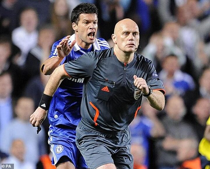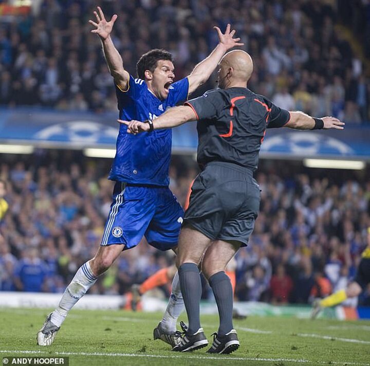Again they called for a penalty and again Ovrebo, now firmly public enemy No 1, refused to bow to the pressure late on. The image of a berserk Ballack chasing, pushing and shouting at the referee remains synonymous with a match Jose Mourinho later branded 'the scandal of Stamford Bridge'.