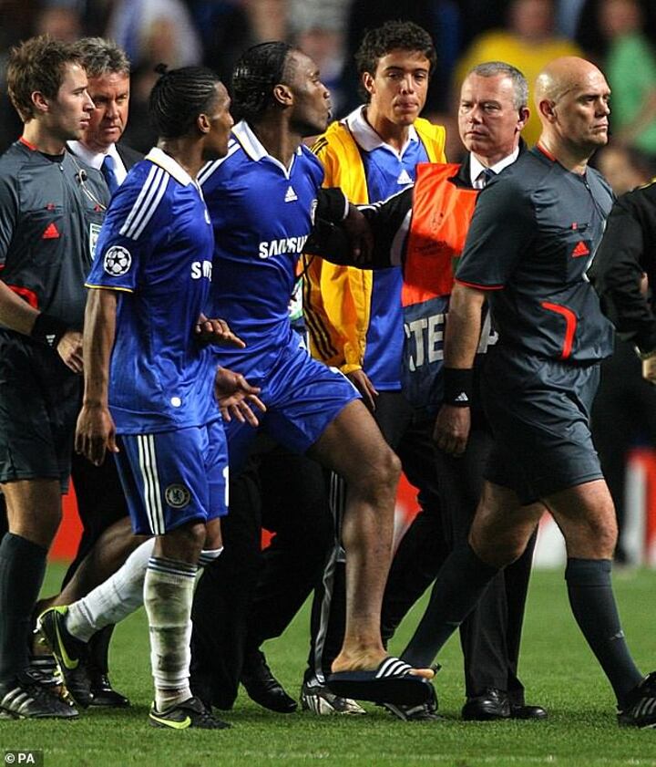 When the full-time whistle eventually sounded Chelsea players wasted no time in making a beeline for Ovrebo. Didier Drogba memorably bellowed 'it's a f****** disgrace' straight down the lens of a television camera. And while he is adamant not all of their appeals were valid, Ovrebo accepts at least one spot-kick should have been given.