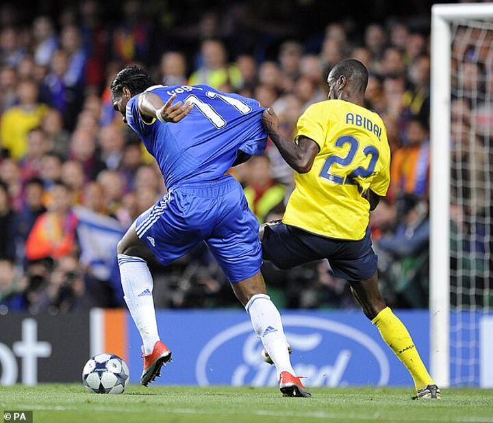 Merely three minutes later and the Bridge faithful were demanding another, this time when Didier Drogba went down under a challenge from Eric Abidal after being released in the box. But again, Ovrebo refused to buckle and Chelsea's protests fell on deaf ears for a second time in quick succession.