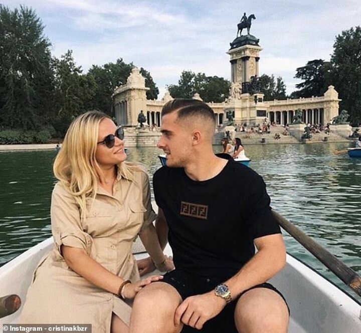 The 21-year-old was joined on the pitch not only by his girlfriend, Cristina Kobzar, but also their pet dog, who was decked out in the colours of his new club.