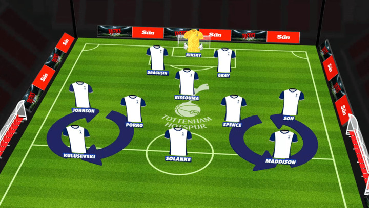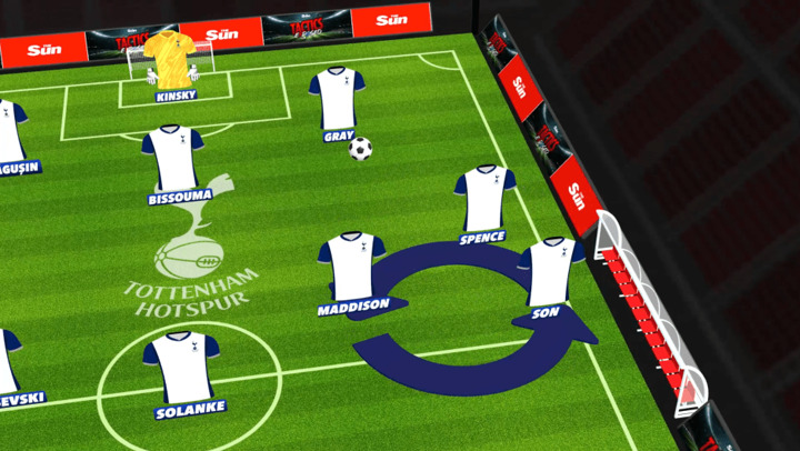 I see the Spurs team as two 'wheels of chaos' with three players on each side - a high No8 like James Maddison and Dejan Kulusevski on either side, then a full-back on either side and a winger on either side.