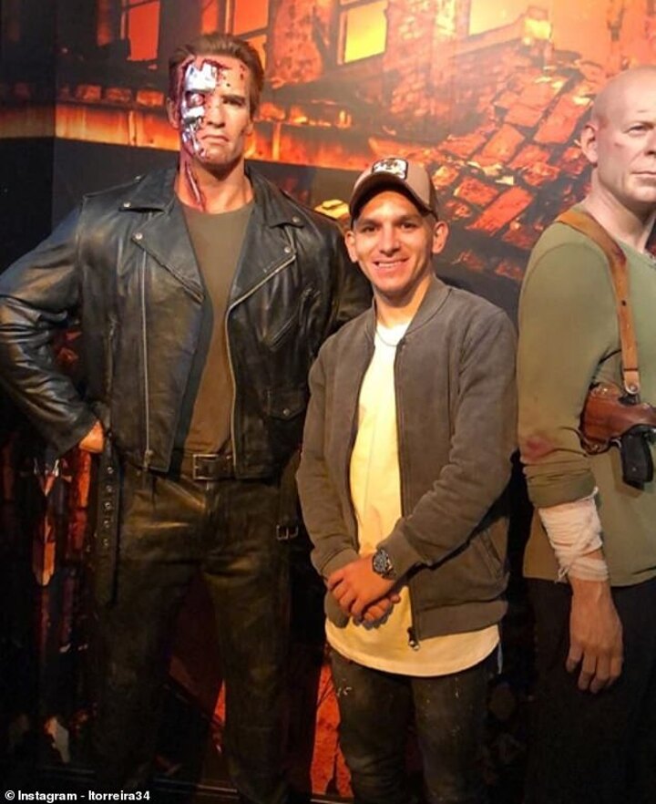 Often cool, calm and collected on the pitch for the Gunners, Torreira could barely contain his excitement as he posed alongside Rafael Nadal, Usain Bolt, the Royal Family and Arnold Schwarzenegger as Terminator.
