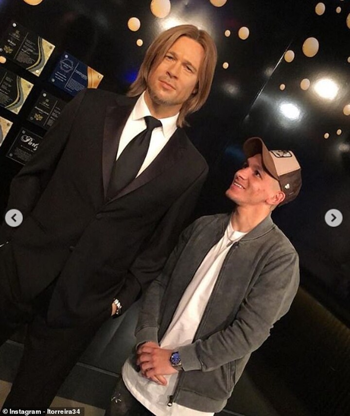 Torreira, a keen movie fan by the look of his visit, stared longingly into the eyes of Brad Pitt's waxwork while also getting close to Johnny Depp and popular DreamWorks character Shrek.
