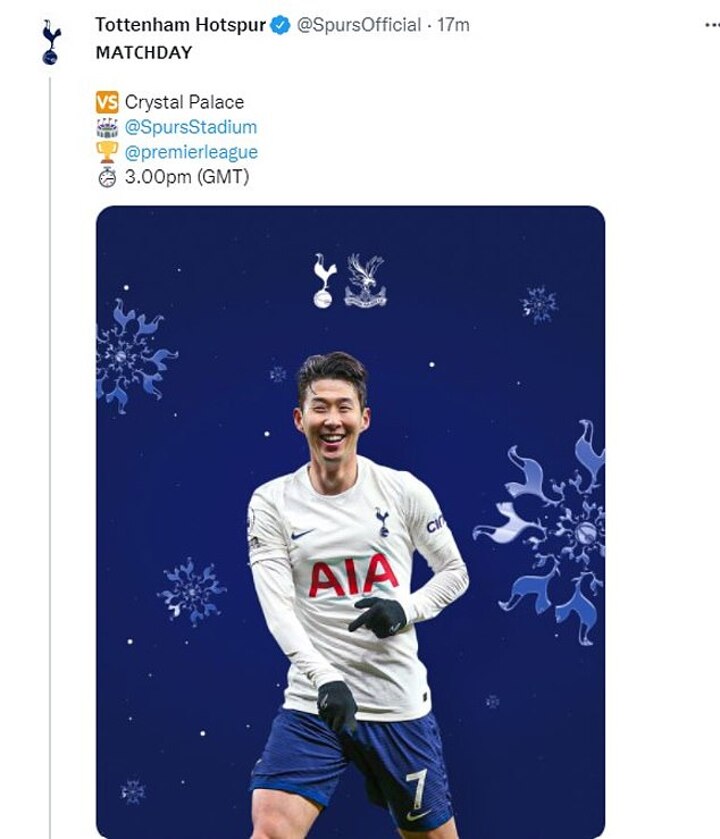 The north London club posted on their Twitter account at 8.30am on Sunday morning with the caption 'MATCHDAY', providing details of the 3pm kick-off and location, being the Tottenham Hotspur Stadium.