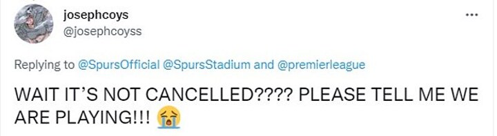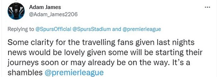 A number of fans have taken aim at the Premier League, with one stating: 'Some clarity for the travelling fans given last nights news would be lovely given some will be starting their journeys soon or may already be on the way. It’s a shambles @premierleague.'