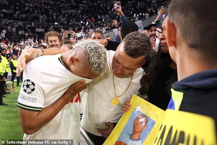An emotional Richarlison was left fighting back tears as he celebrated his dream Champions League debut with friends and family at the Tottenham Hotspur Stadium.