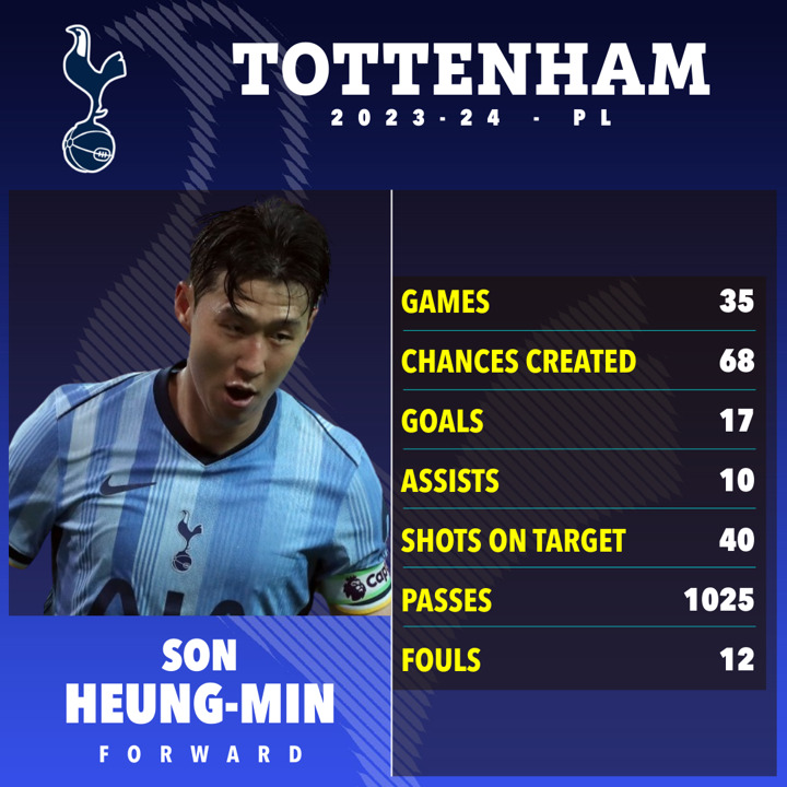 Son scored 17 goals and provided 10 assists in 36 games for Tottenham last season.