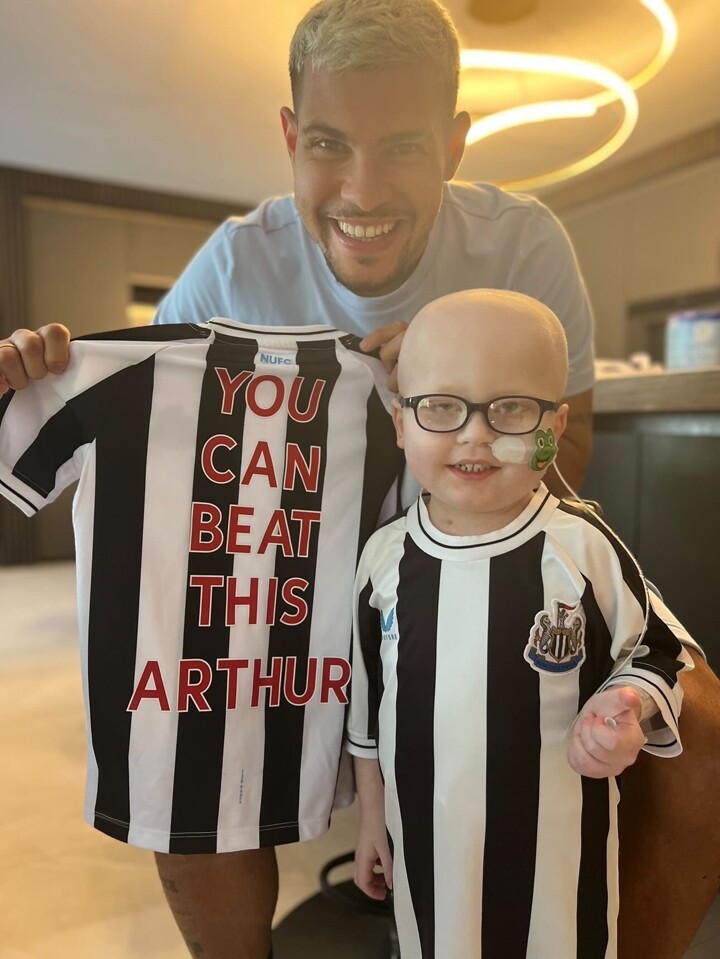 The Brazilian met with Arthur last week and continued to show his support on the matchday. In addition to his goal celebration, Guimaraes held up a Newcastle shirt reading ‘you can beat this Arthur’ during the post-victory dressing room photo.