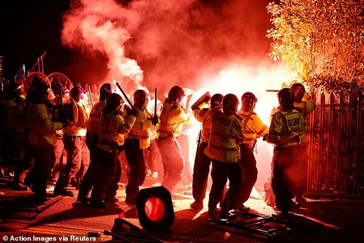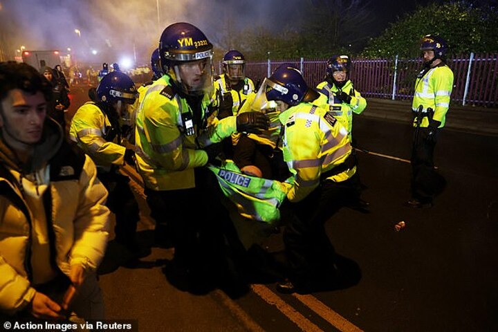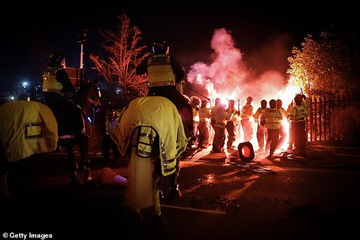 'We've so far made 39 arrests on suspicion of offences including violent disorder and assaulting a police officer and they have been taken into custody for questioning. We will further review all available footage to identify perpetrators.'