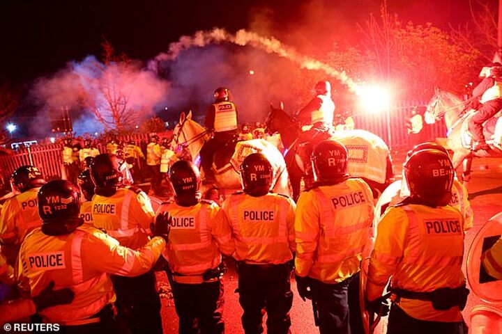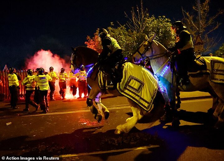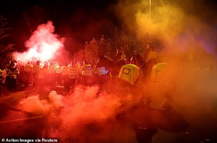 'Unfortunately, there were appalling scenes which saw away fans dangerously throw flares and other missiles at our officers.