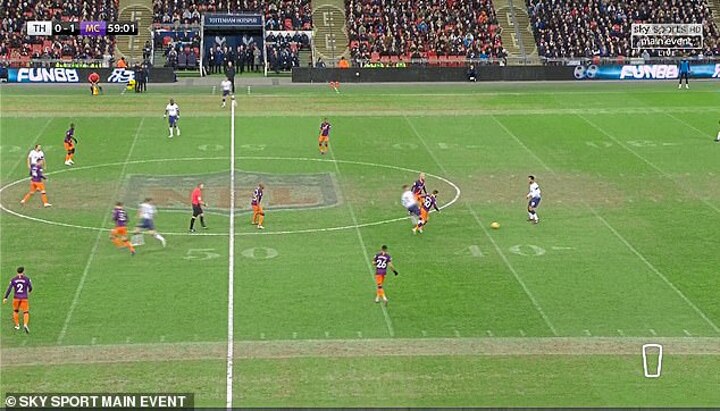 Following Manchester City's 1-0 win against Spurs at Wembley on Monday, manager Pep Guardiola said the pitch did not represent 'football conditions' with NFL markings clearly visible following Sunday's match between the Philadelphia Eagles and Jacksonville Jaguars.