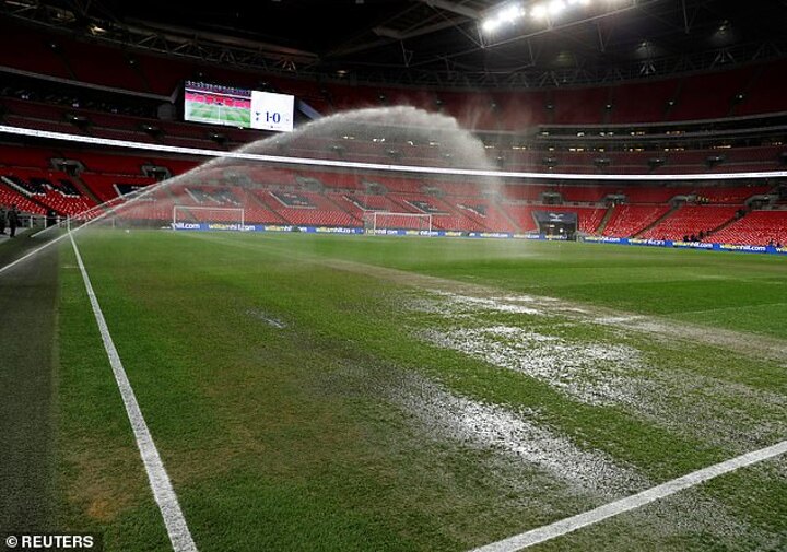 The Wembley groundsmen, however, are not prepared to wash over the surface as they believe it could cause damage to the grass. Instead, they are prioritising the 'playability' of the pitch ahead of the aesthetic look.