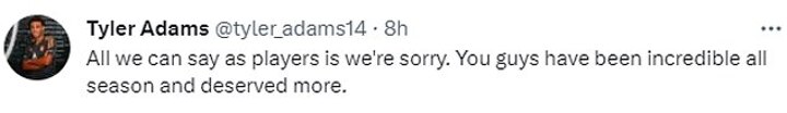 'All we can say as players is we're sorry. You guys have been incredible all season and deserved more.'