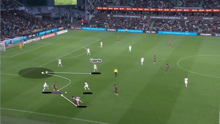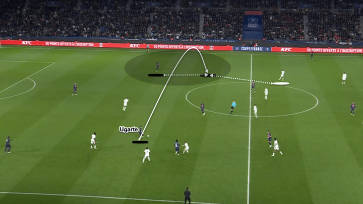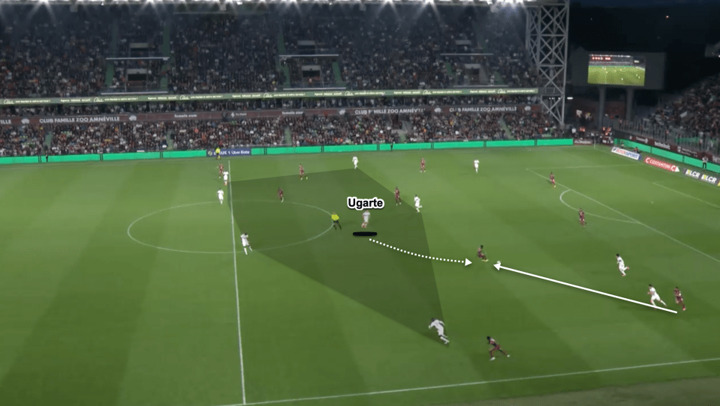 Ugarte has the mobility and ability to cover back or across the pitch to prevent the opposition from playing into an attacking space.