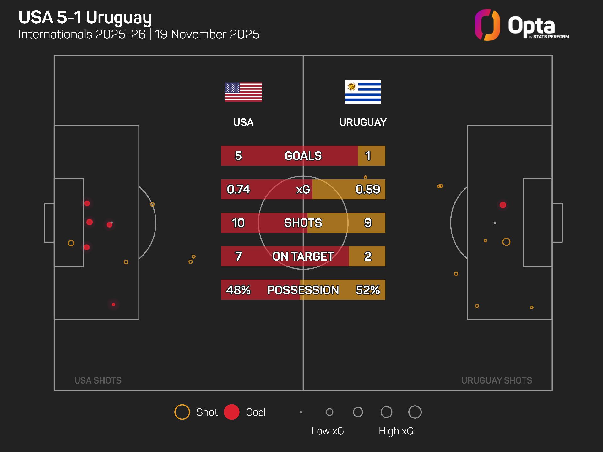 The United States delivered arguably their most dominant display under Mauricio Pochettino as they thumped 10-man Uruguay 5-1 in a friendly at Raymond James Stadium.