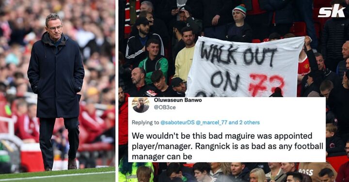 Manchester United fans have lambasted interim manager Ralf Rangnick for his team's disastrous performance in their 1-0 defeat to Crystal Palace on the final day of the 2021-22 Premier League season.