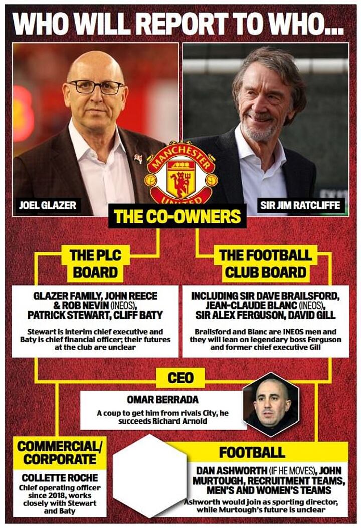 It means INEOS, who also own FC Lausanne-Sport and OGC Nice, will now take control of football operations at Old Trafford after Ratcliffe's £1billion investment in the club.