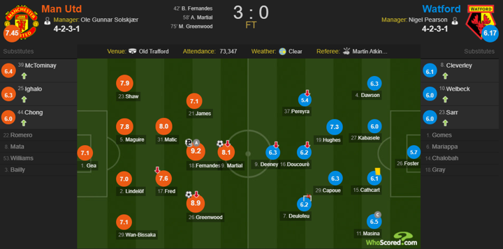 United are by far the more proactive team at the moment, as you'd expect from them at home. Watford are holding firm for now though.