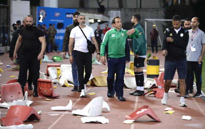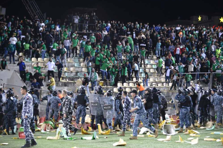 Play resumed and Al-Ahed led 2-1 going into 16 minutes of stoppage time. Both teams scored again to make it 3-2 to Al-Ahed before players clashed following a bad foul and fans stormed on to the pitch.