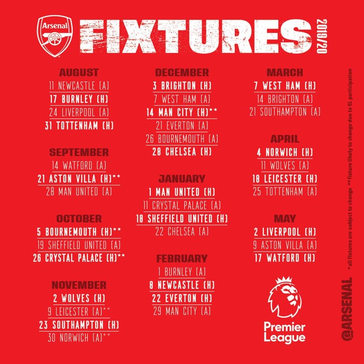 The English FA has released full fixtures for EPL 2019-2020 season. Which of the 'top six' Premier League teams have the best fixtures?
