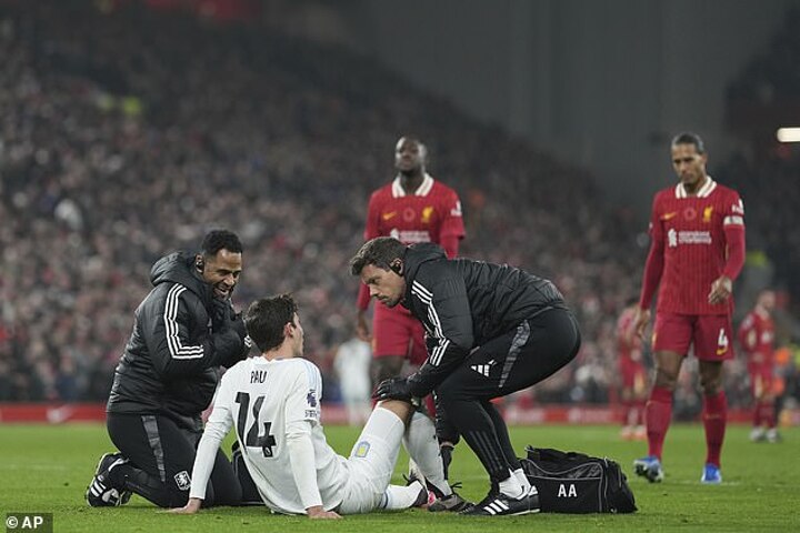The 27-year-old Villa defender didn't stick around for long and looked back at Van Dijk ruefully as he walked off the pitch as is standard practice when physios are brought onto the field of play.