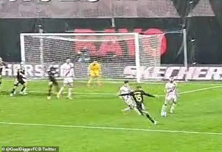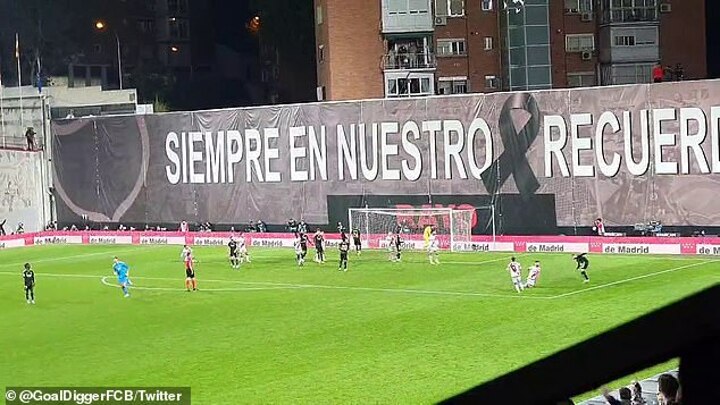 The ball landed amongst a watching crowd of Vallecano supporters watching on from the high-rise as cheers of support rang out inside the ground.