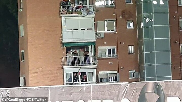 In a video posted to Twitter, the 24-year-old watches on as his shot leaves his boot, sails over the goal, exits the stadium and lands in the second-floor balcony of a crowded neighbouring flat.