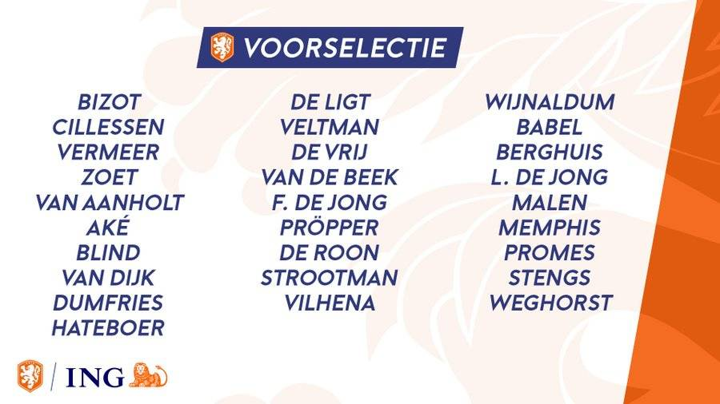 Netherlands have announced their squad for Euro 2020 qualifiers against Northern Ireland and Estonia.