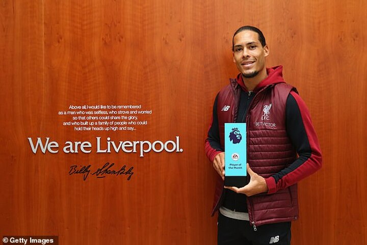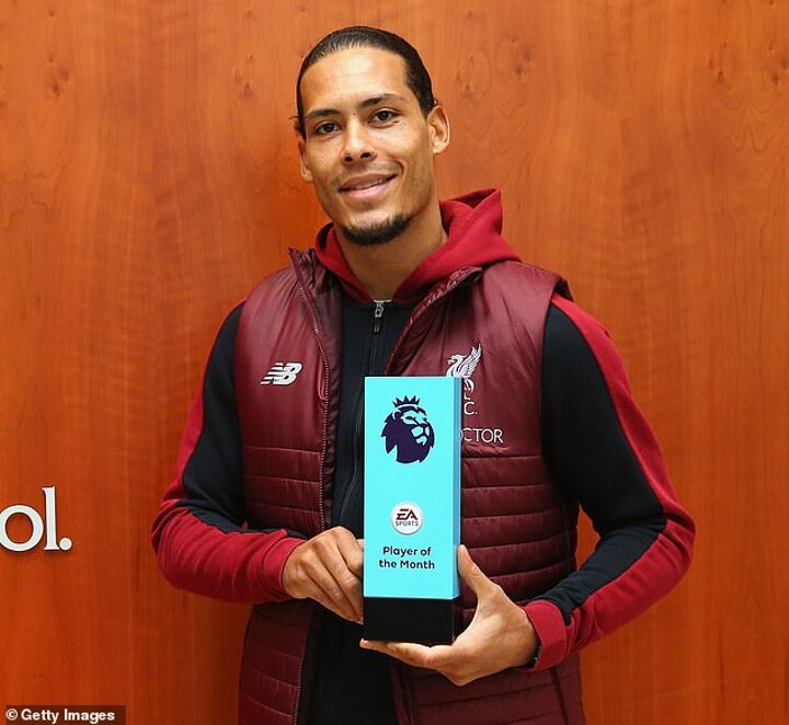 Virgil van Dijk has been named Premier League Player of the Month for December, in doing so becoming the first defender to scoop the prestigious award for six years.