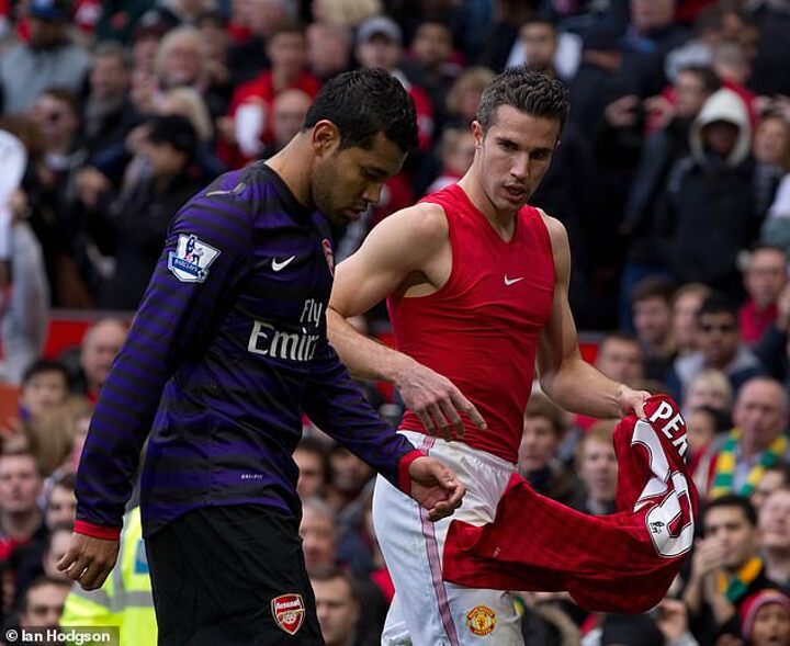 Robin van Persie has admitted that he was to blame for the infamous half time shirt swap with his former Arsenal team-mate Andre Santos in November 2012.
