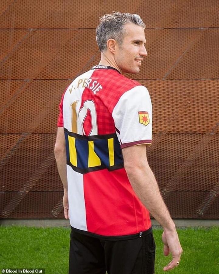 Robin van Persie has been presented with a special shirt made up of the four clubs he played for during his career in professional football.