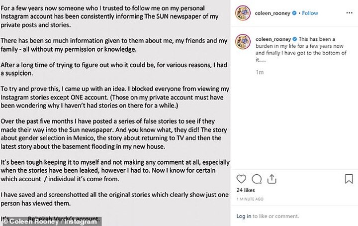 Coleen was given the nickname 'Wagatha Christie' when it was revealed she had been leaking fake stories on her private Instagram to see who was passing the information to the press.