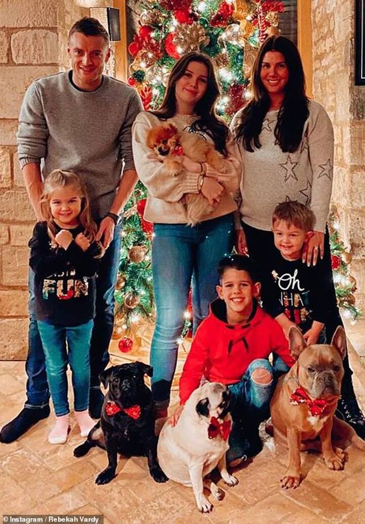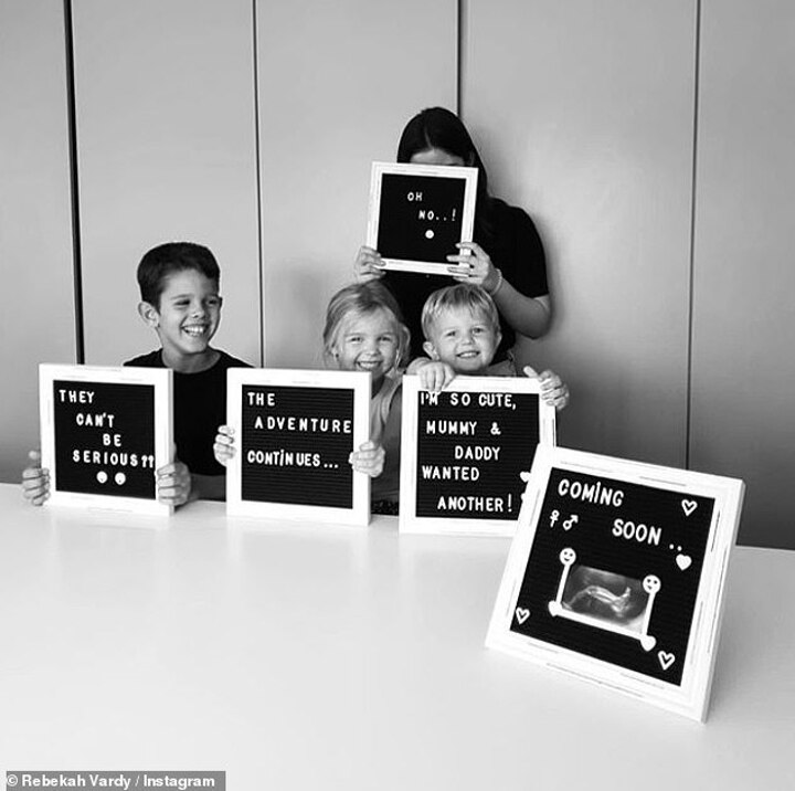 The excited couple shared a sweet black and white snap of the WAG with their two children Sofia and Finley as well as Rebekah's son Taylor from a previous relationship.