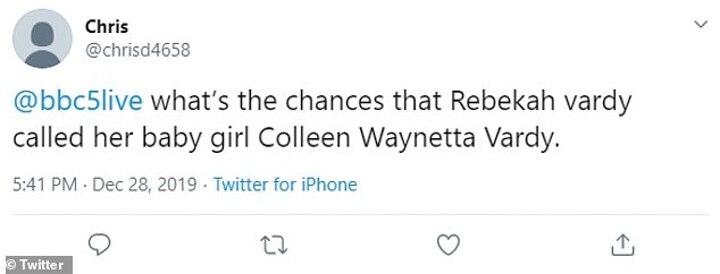 Some people lightheartedly suggested that Jamie and Rebekah could call the new arrival Coleen, while others said the WAG could be a godmother.