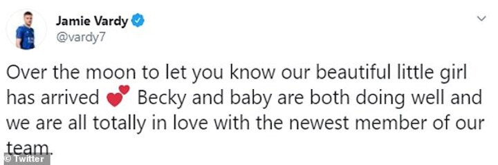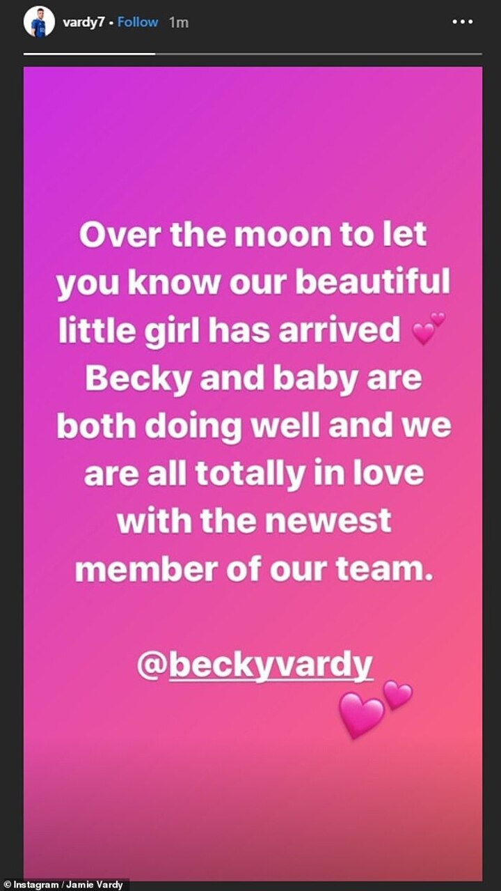 In the post which his wife also shared, Jamie wrote: 'Over the moon to let you know our beautiful little girl has arrived Becky and baby are both doing well and we are all totally in love with the newest member of our team.'