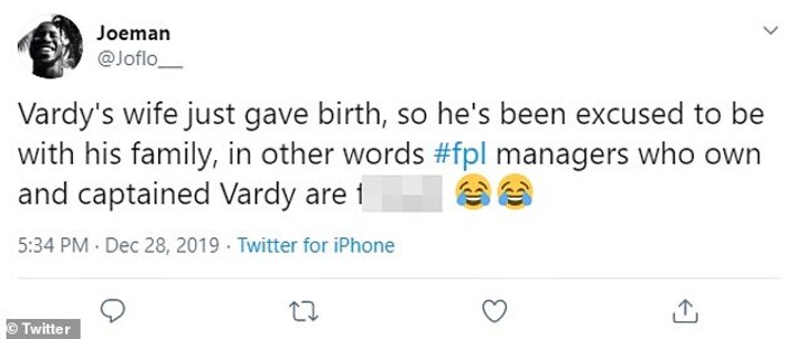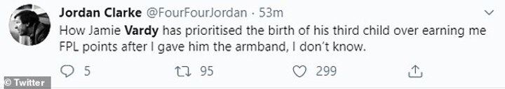 Other football fans were also left frustrated that Jamie's absence from the football pitch would mean their Fantasy Premier League games would be effected.