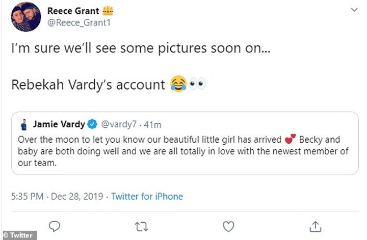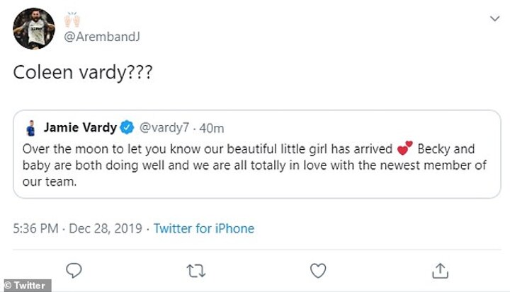 After announcing the news on Saturday, many people took to Twitter to congratulate the Vardy family and also made jokes referencing Coleen's accusations.