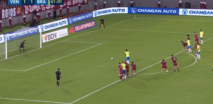 43' Raphinha's free-kick opens the scoring for the visitors! Venezuela 0-1 Brazil