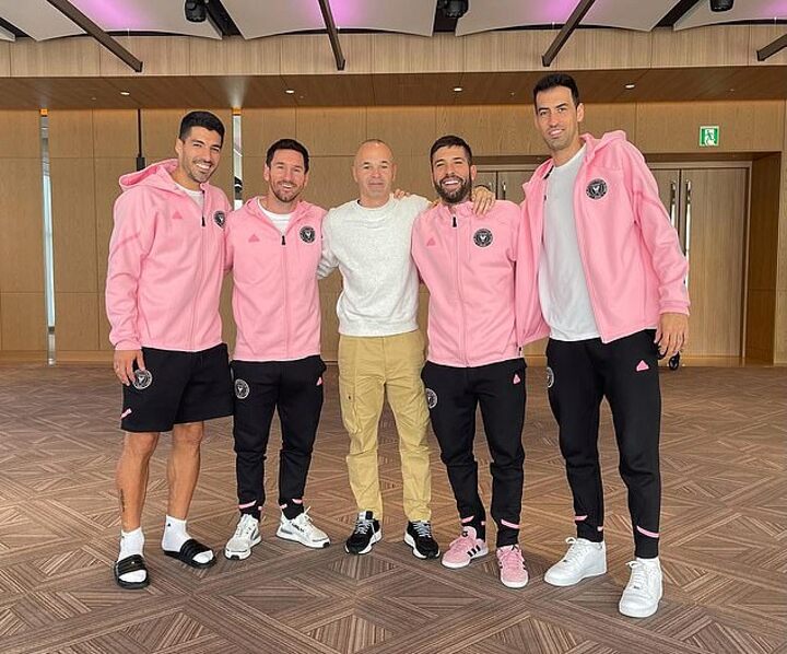Before the game, Messi, Busquets, Luis Suarez and Jordi Alba reunited with their former Barcelona teammate Andres Iniesta.