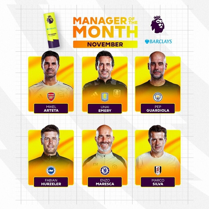 Six Premier League managers have been nominated for the November 2025 Barclays Manager of the Month award, and you can help to decide who wins.