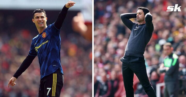 Manchester United forward Cristiano Ronaldo was spotted making a gesture towards Arsenal manager Mikel Arteta following the awarding of a penalty to the Gunners on Saturday.