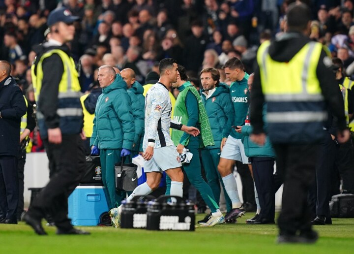 A third wrote: "Watching Ronaldo throw a little temper tantrum at the end of the Scotland game love to see it."