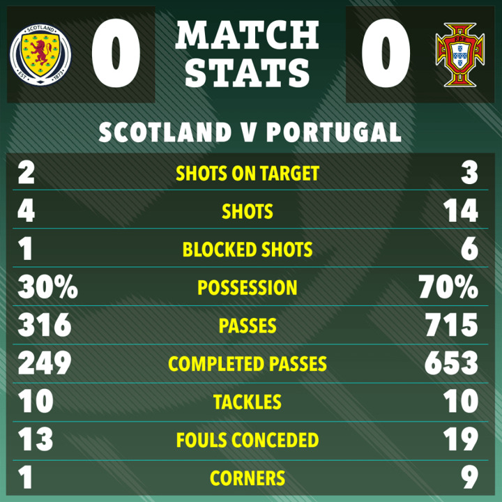 Portugal continued to dominate as Clarke’s men, looking to avoid a fifth straight defeat for the first time in Scotland’s history, continued to play a dangerous game.
