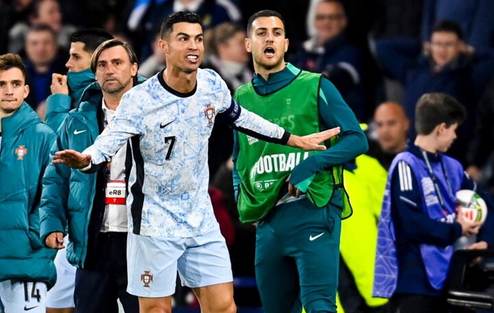 Scotland survived another let-off after the restart when Ronaldo, totally unmarked on the penalty spot, nodded Jota’s cross over.