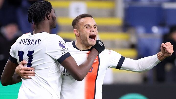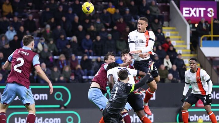 Burnley goalkeeper James Trafford is blocked from reaching a cross by Luton striker Elijah Adebayo which allows Carlton Morris to score a late equaliser.