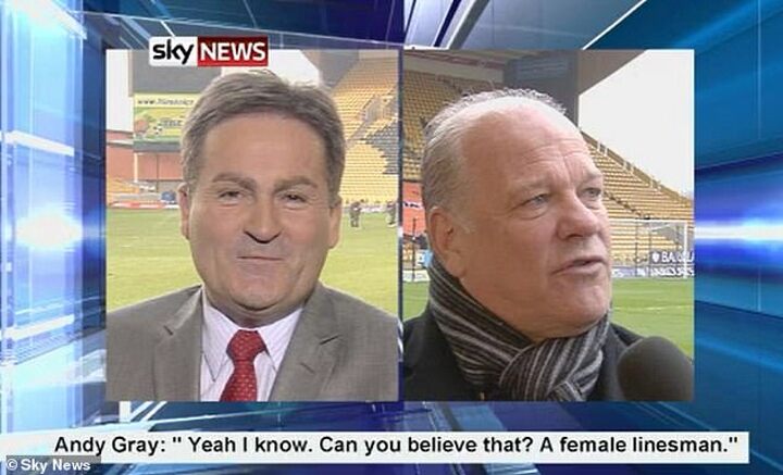 Keys was recorded saying: 'Somebody better get down there and explain offside to her (Massey),' while Gray replied: 'Yeah, I know. Can you believe that? Female linesman. Forget what I said – they probably don't know the offside rule.'