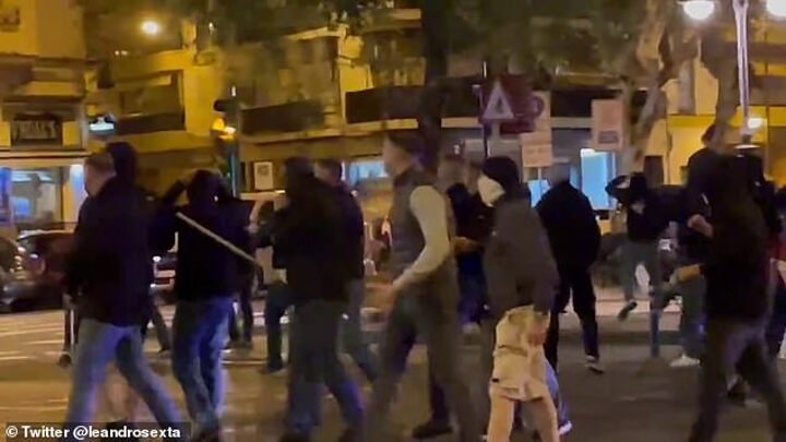 It is not clear what exactly ignited the trouble between the two sets of fans outside an Irish bar before Spanish police intervened.